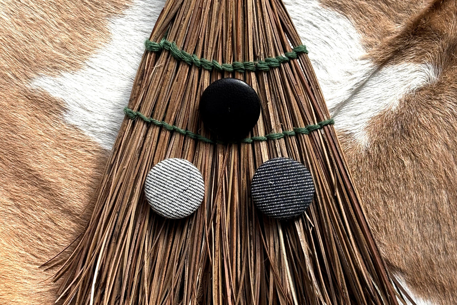 Lambskin and Denim Button Pins