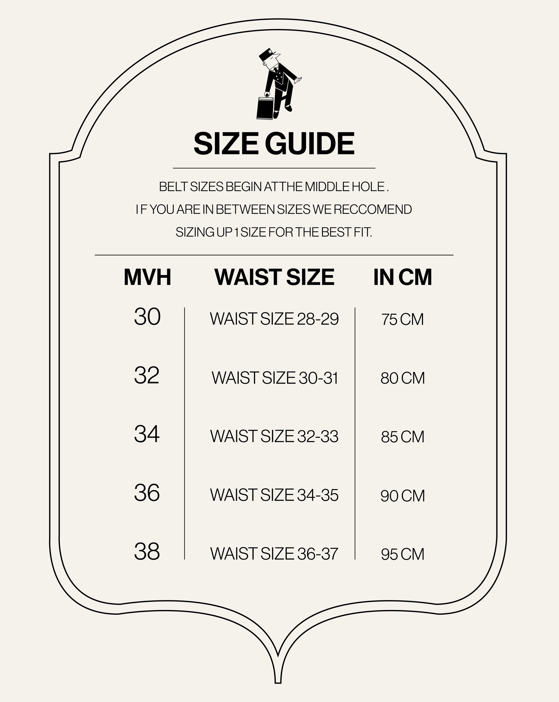 For sizing reference: if you are a 30" waist, we recommend our size 32 Belt.